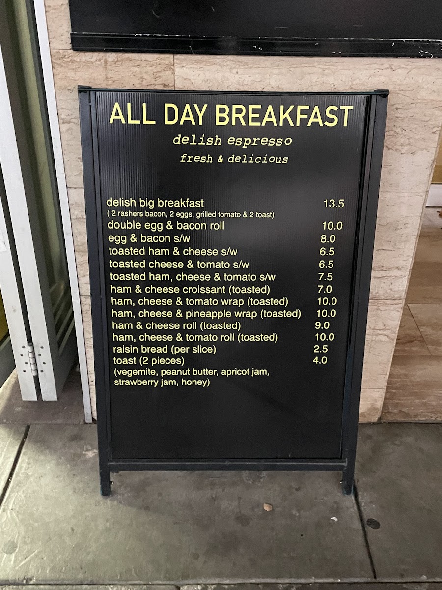 Delish Espresso offers a variety of satisfying breakfast and snack options that cater to different tastes. The Delish Big Breakfast is a hearty choice, perfect for those looking for a filling meal to start their day. If you’re in the mood for something quicker, the Double Egg & Bacon Roll delivers a delicious combination of flavors in a simple, yet satisfying package. For a classic breakfast sandwich, try the Egg & Bacon S/W, which brings together two timeless ingredients in a toasted sandwich. Alternatively, the Toasted Ham & Cheese S/W offers a savory, comforting option, while the Toasted Cheese & Tomato S/W is a great vegetarian choice, combining melty cheese and fresh tomato. Each dish is crafted with care, ensuring that whether you’re enjoying a full breakfast or a light snack, you’ll leave satisfied.